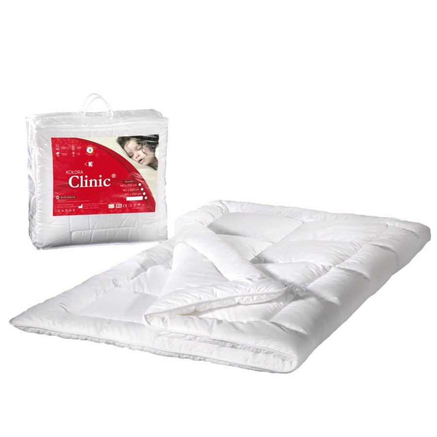 Kołdra CLINIC przeznaczona jest do stosowania całorocznego posiada certyfikat Oeko-Tex Standard 100, przyznawany produktom wolnym od substancji szkodliwych w stężeniach mających negatywny wpływ na stan zdrowia człowieka (m.in. formaldehyd i barwniki alergizujące). Można prać ją w temperaturze 95°C, co dodatkowo gwarantuje skuteczne niszczenie wszelkiego rodzaju szkodników i pasożytów. Kołdra dostępna jest w kolorze białym, czterech rozmiarach: 140x 220 cm, 160 x 200 cm, 180 x 200 cm oraz 220 x 200 cm. Pozwala to dopasować odpowiedni do łóżka dziecka lub osoby dorosłej.