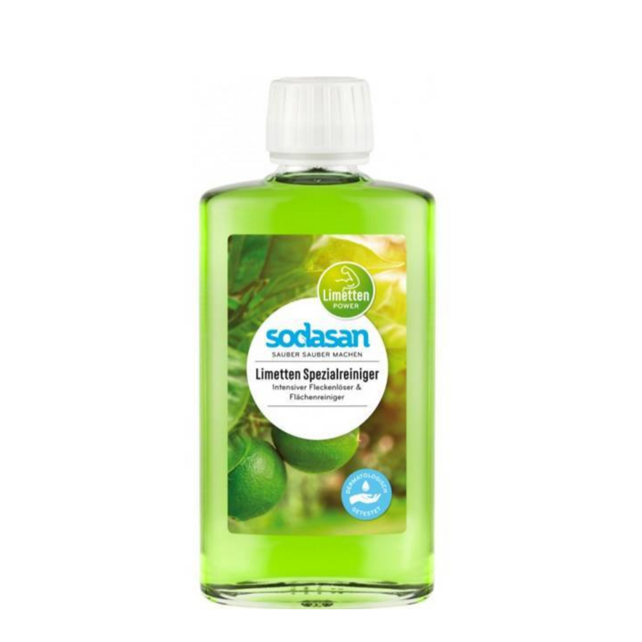 Sodasan Silny koncentrat czyszczący do trudnych zabrudzeń limetka to naturalny, organiczny i ekologiczny środek czyszczący, idealny do skutecznego usuwania trudnych plam i zabrudzeń różnego pochodzenia - resztki kleju i żywic, gumy do żucia, plam z długopisu i flamastrów - z tkanin, tapicerek, dywanów i wszelkich powierzchni zmywalnych.
