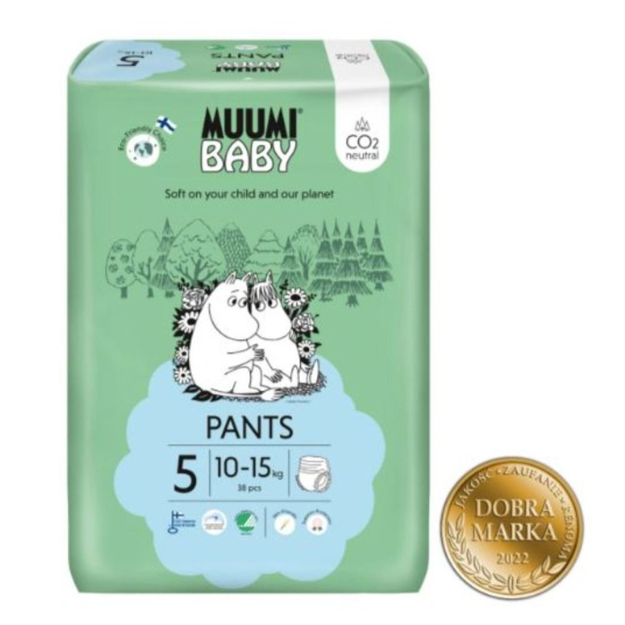 Pieluchomajtki wyposażone są w elastyczny pasek na talii oraz ściągające gumki przy nogach, które gwarantują, że nic nie wydobędzie się na zewnątrz. Dodatkowo na ich odwrotnej stronie znajduje się taśma, która umożliwia higieniczne wyciągnięcie. Wszystko to sprawia, że dzięki pieluchomajtkom Muumi nie tylko dziecko ma zawsze dobry humor, ale również i rodzic ułatwione zmienianie i zakładania nowych.
