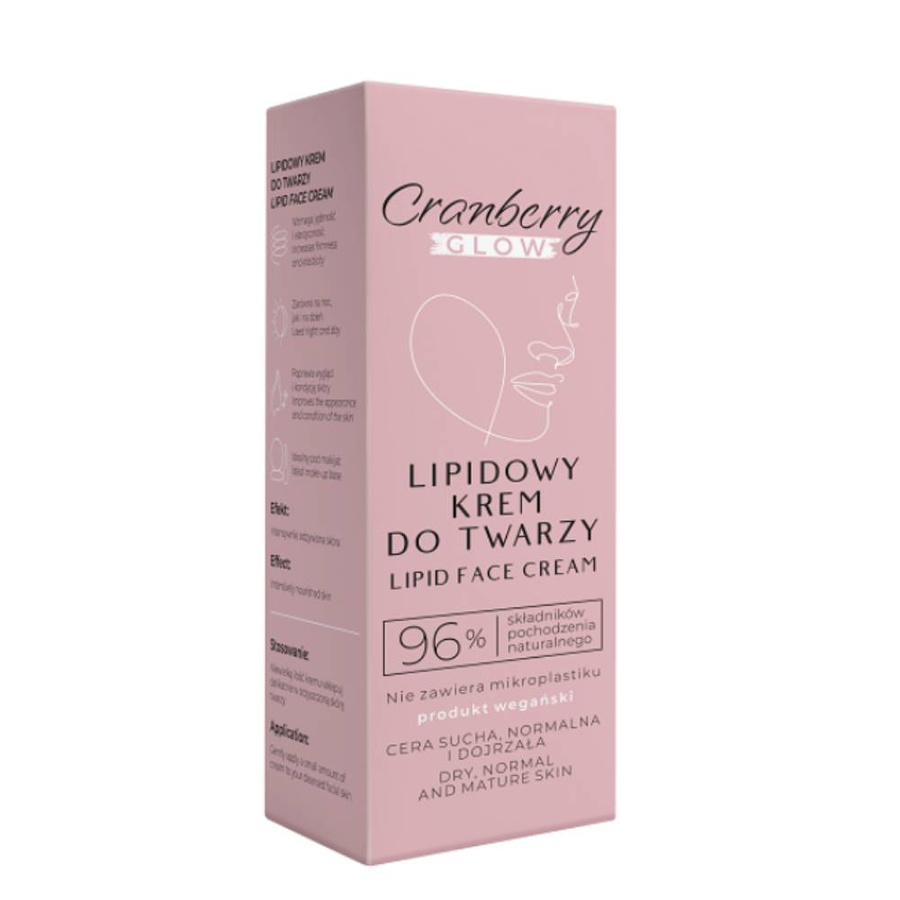 Naturalny lipidowy krem do twarzy Cranberry Glow marki Nova Kosmetyki to produkt stworzony z myślą o kompleksowej pielęgnacji skóry twarzy. Bogata formuła kremu zawiera naturalne składniki, które działają nawilżająco, odżywczo i regenerująco, zapewniając skórze kompleksową pielęgnację.