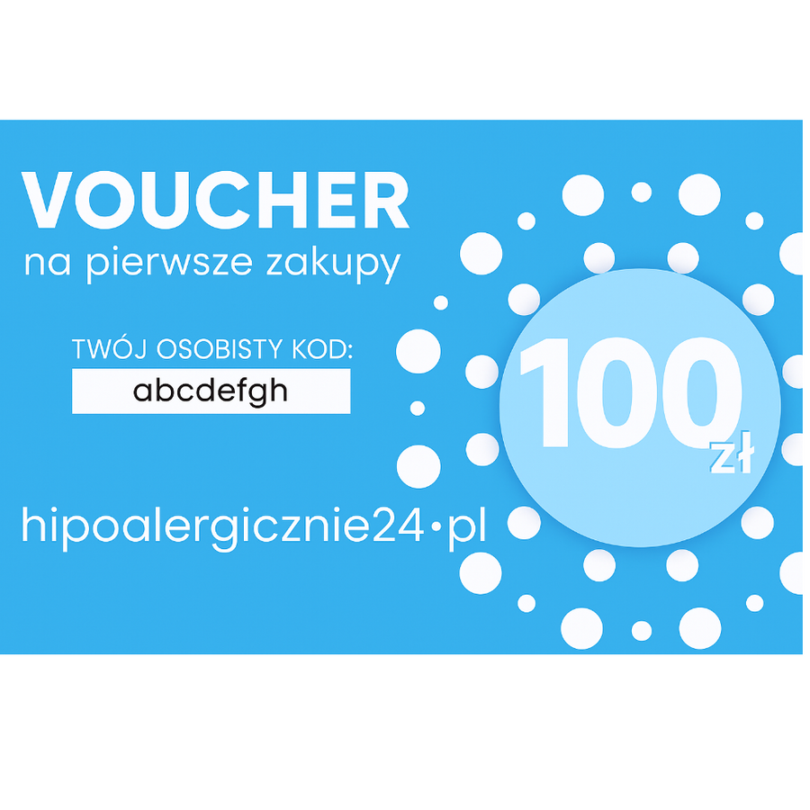 Po zakupie Voucheru podarunkowego o wartości 100 zł na produkty hipoalergiczne i naturalne na hipalergicznie24.pl, dodaj wybrany produkt do koszyka i wpisz kod podarunkowy podczas finalizacji zamówienia. Kwota 100 zł zostanie automatycznie odjęta od całkowitej wartości zamówienia.