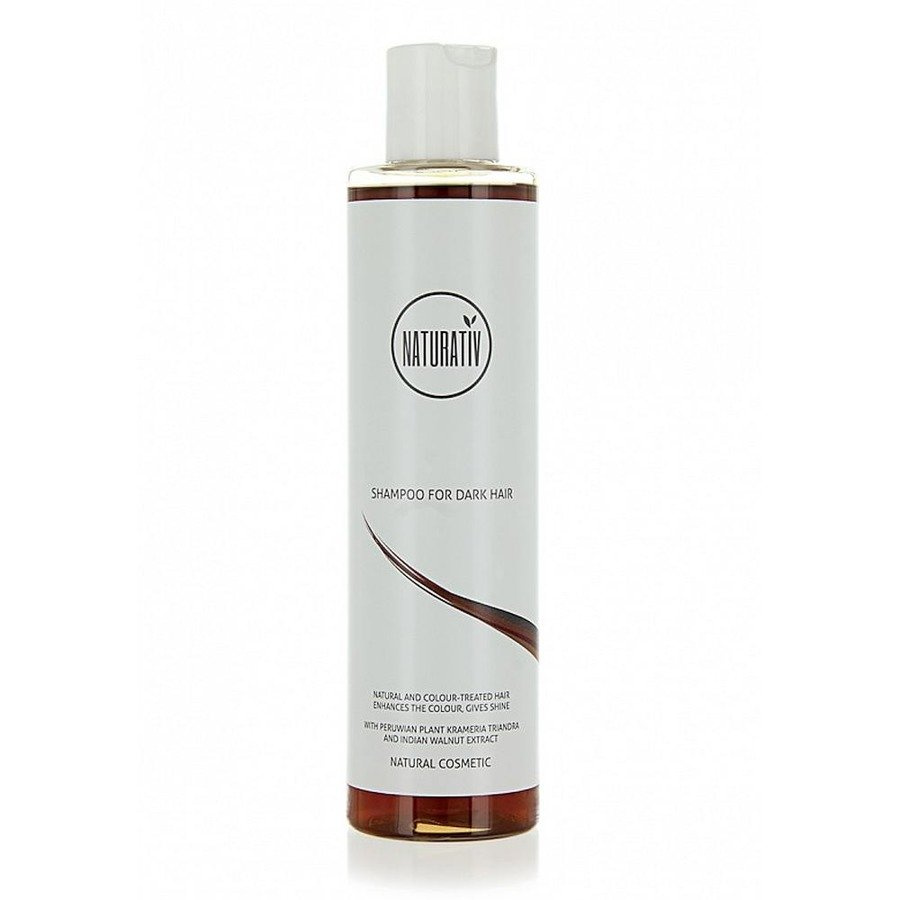 Naturativ szampon naturalny do włosów ciemnych łagodnie myje i jednocześnie dodaje koloru włosom ciemnym. Włosy stają się rozświetlone. Preparat doskonale maskuje niewielkie odrosty. Jest naturalny, a przede wszystkim łagodny dla skóry głowy. W skład Naturativ Szampon do włosów ciemnych wchodzą wyciąg z krameria triandra, żarnowca i orzecha włoskiego )wzmaga intensywność koloru ciemnego od brązu do czarnego, dodaje refleksów), naturalna betaina (nawilża), roślinne środki myjące (łagodnie myją).