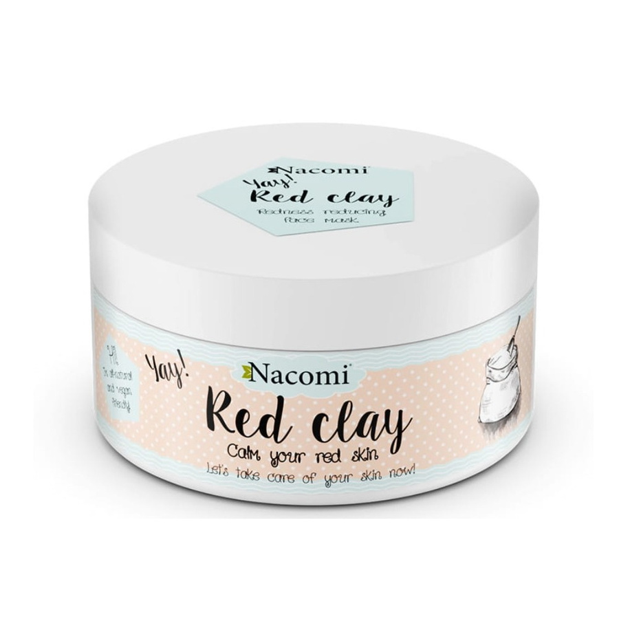 Glinka czerwona Nacomi przeznaczona jest do pielęgnacji cery normalnej, tłustej, mieszanej i trądzikowej. Sprawdza się przy skórze wrażliwej i skłonnej do zaczerwienień. Zalecana jest przy trądziku różowatym i pękniętych naczynkach. Można ją stosować do twarzy jak i całego ciała w postaci maseczek lub okładów.