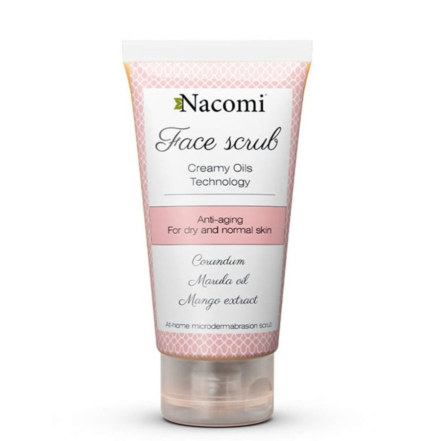 Naturalny peeling do twarzy przeciwzmarszczkowy Nacomi jest idealnym wyborem, gdy szukasz skutecznego i bezpiecznego produktu. Swoje właściwości czerpie z niezwykłego składu. Zawiera min. olej ze słodkich migdałów, olejek marula i olej arganowy. Olejek arganowy ma zbawienny wpływ na skórę: łagodzi podrażnienia, aktywuje procesy regenerujące naskórek, spłyca i ujednolica płytkie blizny i zmarszczki. Naturalny olejek marula posiada silnie działanie wzmacniające strukturę skóry, dzięki czemu jest ona bardziej odporna na działanie czynników zewnętrznych. Zwalcza wolne rodniki, aktywuje procesy regeneracyjne naskórka i działa antybakteryjnie. Witamina E naniesiona na skórę aktywuje produkcję kolagenu w skórze, stymuluje ją do regeneracji i uelastycznia. Wymiata wolne rodniki z organizmu, dzięki czemu posiada silne działanie odmładzające i wygładzające. Naturalny olejek ze słodkich migdałów intensywnie natłuszcza i dogłębnie nawilża naskórek. Szczególnie polecany dla osób posiadających wrażliwą, suchą skórę. Stymuluje procesy naturalnej odbudowy mikrouszkodzeń, wygładza zmarszczki i inne drobne niedoskonałości Ekstrakt z mango działa intensywnie wygładzająco, usprawnia mikrokrążenie i stymuluje procesy oczyszczania skóry z toksyn. Ekstrakt zawiera mnóstwo wartościowych witamin, szczególnie cennych podczas kuracji przeciwzmarszczkowej, takich jak B, C, E i prowitaminę A. Korund jest składnikiem złuszczającym skórę i stymulującym do regeneracji. Pomaga delikatnie oczyścić skórę, dzięki czemu naturalne olejki lepiej się wchłaniają i bardziej aktywnie odżywiają skórę. Olejek macadamia doskonale sprawdza się w przypadku walki ze zmarszczkami i bliznami, ponieważ szybko wchłania się w skórę i nawilża ją, stymulując procesy regeneracji naskórka. Dzięki zdolności do przenikania w głębokie warstwy skóry wykazuje silne działanie wygładzające i odmładzające. Wysoka zawartość przeclwutleniacza - tokotrienolu - dodatkowo pomaga zachować skórze młody wygląd. Polecamy również inne naturalne kosmetyki do twarzy z naszego sklepu.