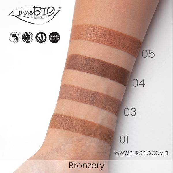 Bronzer Puro Bio przeznaczony jest do podkreślania naturalnych konturów twarzy oraz nadawania jej zdrowego kolorytu. Kosmetyk jest naturalny, dlatego rekomenduje się go także dla alergików.