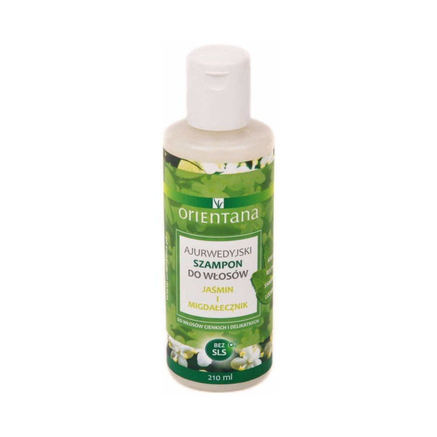 Orientana, Ajurwedyjski Szampon do włosów JAŚMIN I MIGDAŁECZNIK zalecany jest do codziennej higieny włosów u dzieci i u dorosłych. Naturalne, niealergizujące składniki, działają w łagodny, lecz stanowczy sposób i oczyszczają skórę głowy.