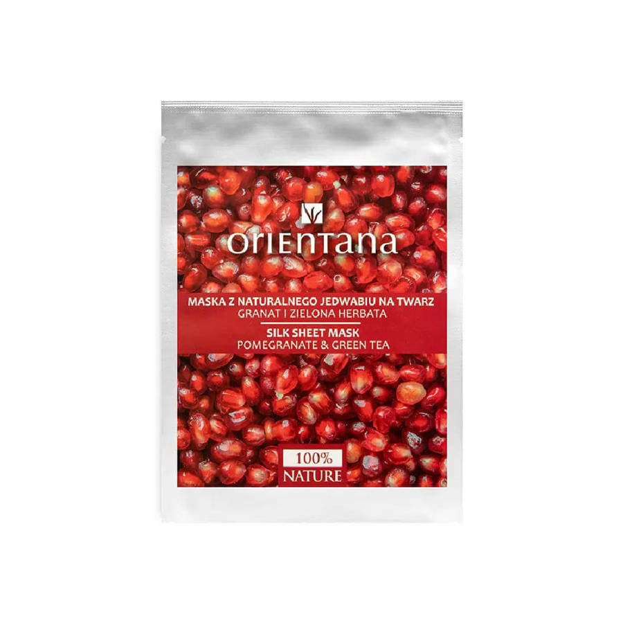 Orientana Maska z naturalnego jedwabiu na twarz granat i zielona herbata