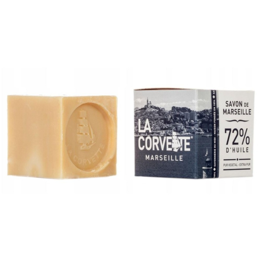 Naturalne mydło marsylskie w kostce La Corvette powstaje wg tradycyjnej metody w procesie zmydlania olejów roślinnych, bez dodatku barwników, perfum i konserwantów. Może być używane jako mydło do rąk, do całego ciała, czy nawet szampon. Nawilża i natłuszcza skórę, dzięki czemu staje się ona elastyczna i gładka.