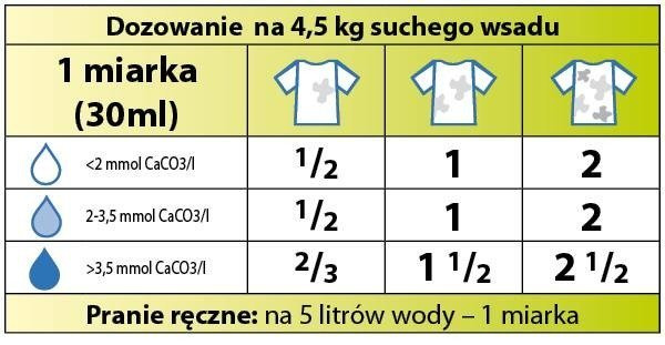 pranie w pralce automatycznej (dozowanie przy 4,5 kg suchego wsadu: